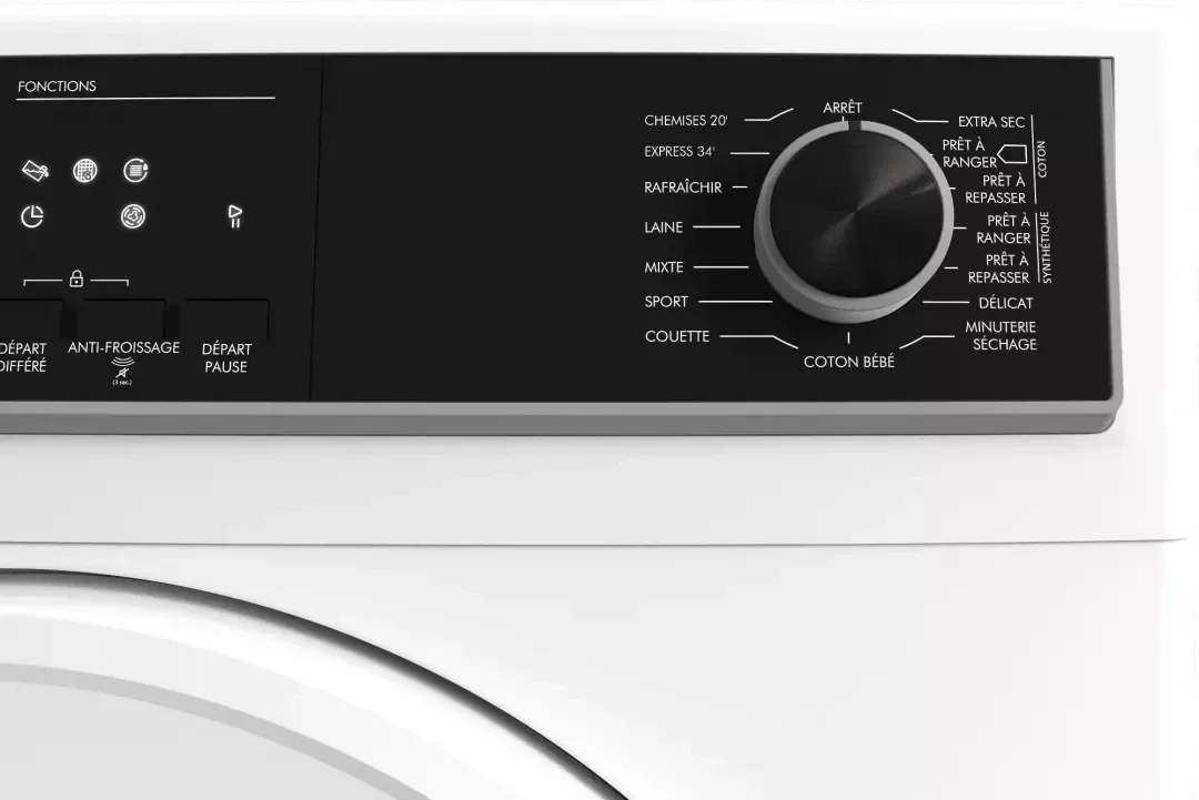 Touches spéciales Réglage du niveau de séchage, Anti-froissage, Annulation buzzer fin de cycle